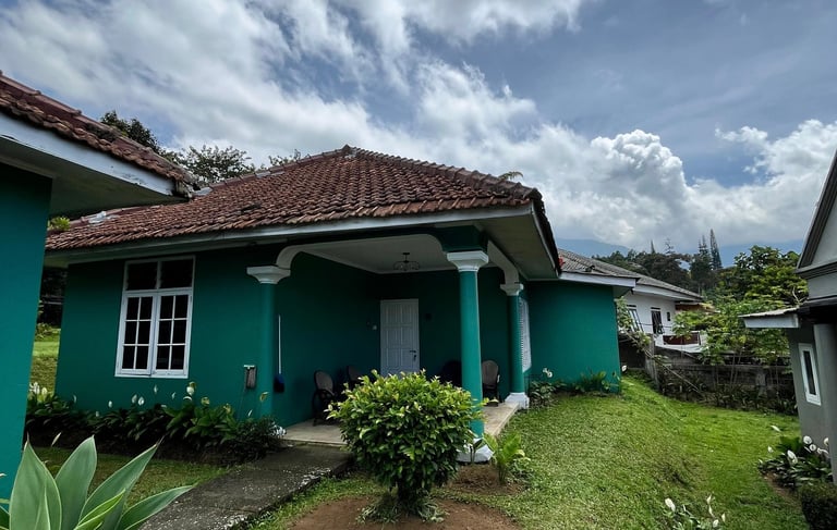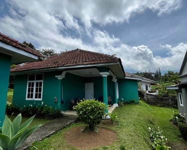 Fasilitas Teras: Area teras yang luas dilengkapi dengan set kursi rotan dan meja kaca, sangat cocok untuk menikmati kopi pagi atau udara sejuk pegunungan.