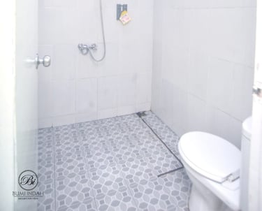 Area Mandi: Dilengkapi dengan Shower dan sekat dinding pemisah untuk menjaga area toilet tetap kering.