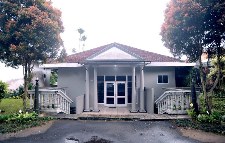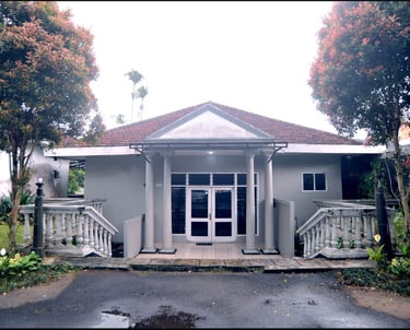 Suasana Estetik: Desain bangunan minimalis dengan dominasi warna putih yang bersih.