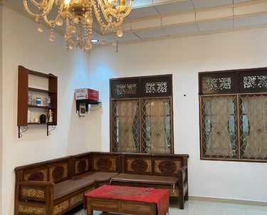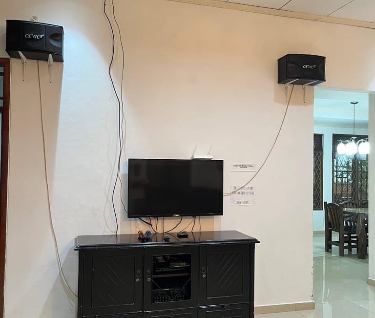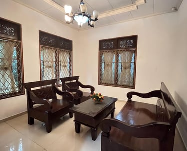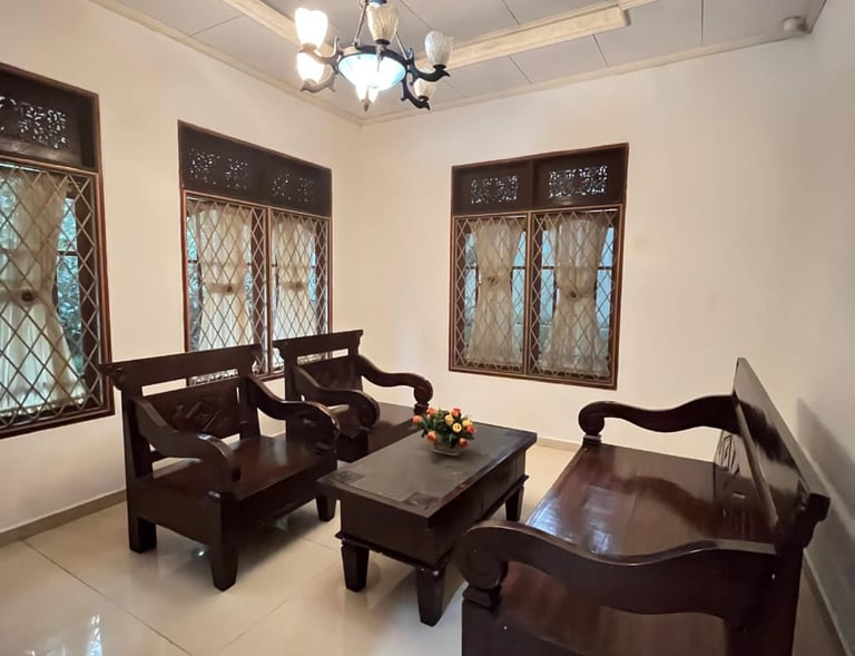 Ruang tamu yang luas dan nyaman, didesain untuk menyambut tamu dengan hangat dan suasana yang santai.