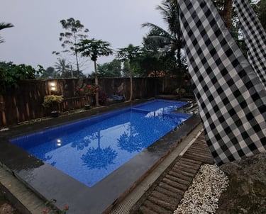Kolam renang yang menyegarkan, dikelilingi pemandangan indah dan suasana yang santai.
