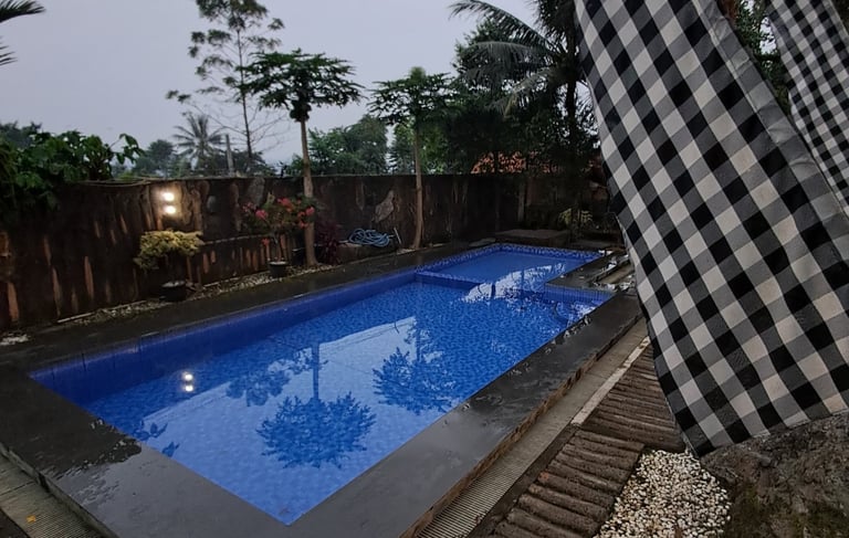 Vila eksklusif di tengah alam Megamendung, Bogor, dengan suasana tenang dan sejuk. Nikmati privasi, dikelilingi hijaunya pegunungan, dan udara segar khas pedesaan. Pas untuk melepas stres, berkumpul dengan keluarga, atau liburan romantis.